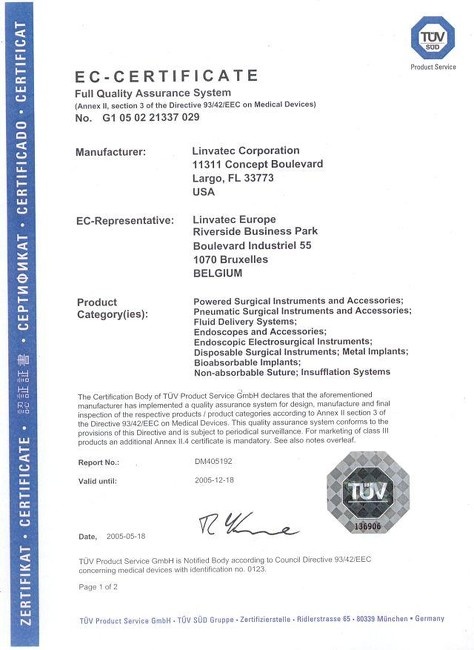 Od roku 2000 zajišťujeme i prodej speciální zdravotnické techniky určené k provádění ortopedických a traumato-chirurgických operací. Došlo k převzetí výroby poháněných instrumentů 3M novým vlastníkem, společností Linvatec. Společnost Linvatec je součástí konsorcia ConMed USA.