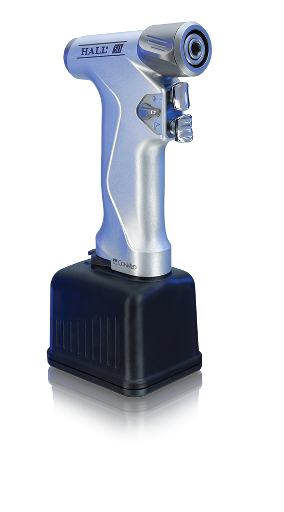 Bateriový systém HALL 50 je systém na operace velkých kostí. Pohonem jsou lithiové baterie.