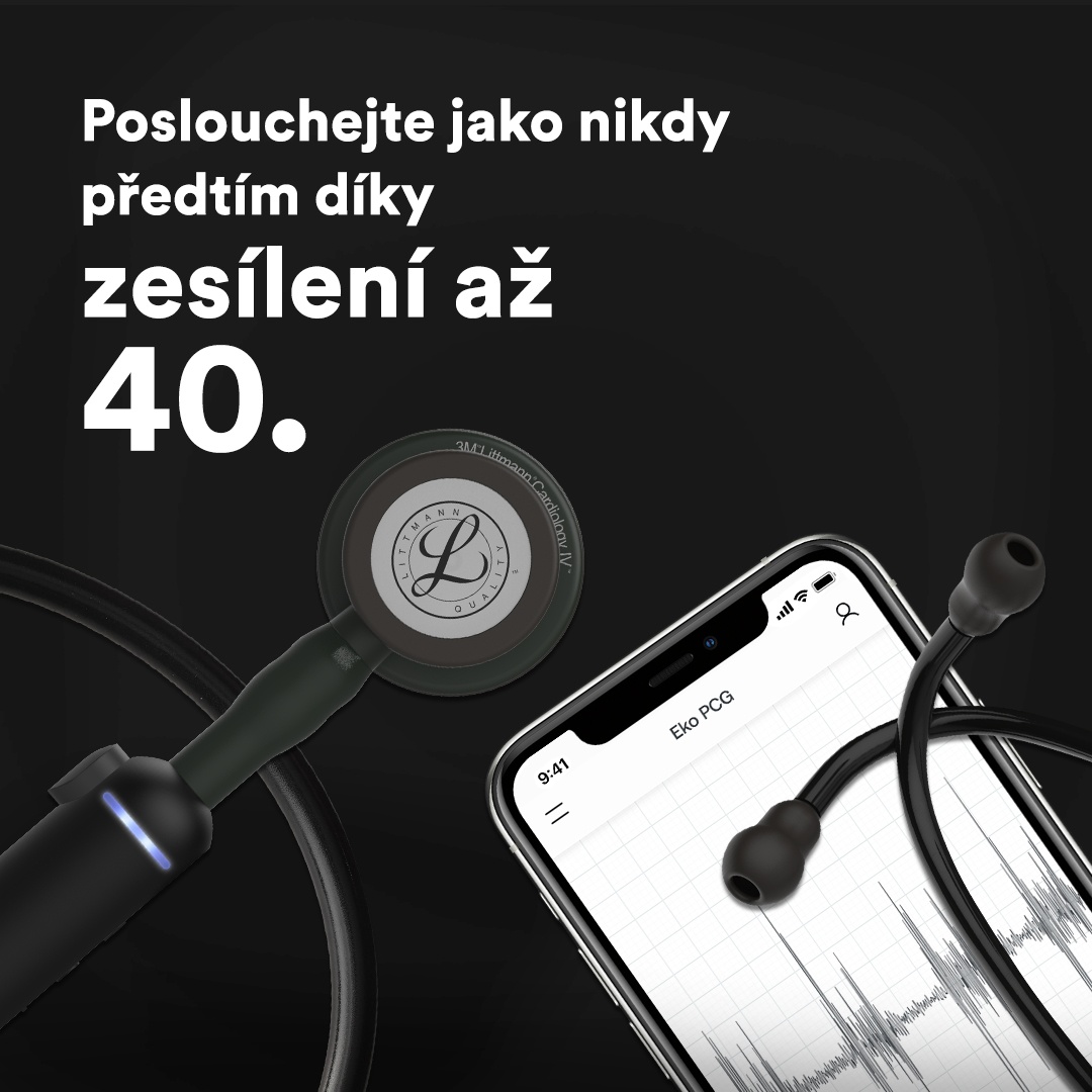 3M Littmann CORE fonendoskop vyhovuje požadavkům organizace FDA. Umí přepínat mezi analogovým režimem naslouchání a zesíleným režimem, abyste během vyšetření mohli naslouchat tak, jak vám to vyhovuje. Technologie laditelné membrány, vynález společnosti 3M (nyní Solventum), umožňuje poslouchat zvuky o různé frekvenci jednoduše tak, že upravíte tlak na hrudní snímač. Když hrudní snímač na pacienta přitlačíte lehce, uslyšíte nízkofrekvenční zvuky. Trochu víc zatlačte a uslyšíte vysokofrekvenční. Měkké těsnicí ušní olivky se umí přizpůsobit jednotlivým uším, takže poskytují optimální pohodlí a skvěle izolují okolní zvuky. 3M Littmann CORE fonendoskop spolupracuje se softwarem Eko na zařízení se systémy iOS a Android. Získáte tak způsob, jak ukládat a opatřovat poznámkami záznamy v délce 15, 30, 60 a 120 sekund, a to v rámci zabezpečeného řídicího panelu a v souladu se zákonem HIPAA. Vytvořte si knihovnu srdečních ozvů za účelem sledování průběhu nemoci nebo vzdělávání. Záznamy může také bezpečně sdílet s kolegy. 3M Littmann CORE fonendoskop kombinuje přípojku Eko CORE a 3M Littmann Cardiology IV fonendoskop.